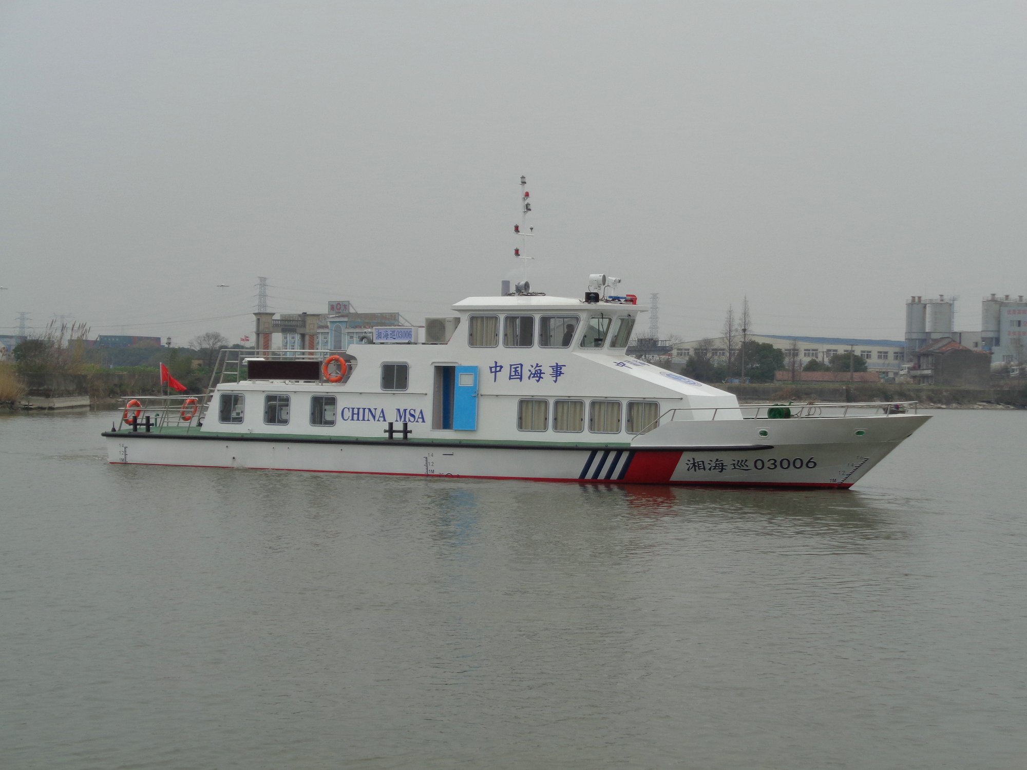 本船湖南省海事日常巡邏船,航行于內河B級水域。日??勺鳛榫S護水上安全巡邏船使用。本船按航行于內河B級航區(qū)的巡邏船設計。本船為單底、單甲板鋼質全焊接結構,由2臺船用柴油機驅動、并配有高效螺旋槳、艉部帶短折角的V型圓舭、并設有方龍骨的艉消波船型,具有良好的耐波性和操縱性。