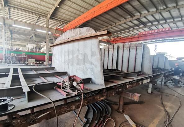 2020年10月23日,18m純電動交通艇在嘉興市偉佳船舶有限公司廠區(qū)開工,嘉興市偉佳船舶有限公司、無錫賽思億電氣科技有限公司及嘉興市金航船舶設計有限公司三方代表出席了開工儀式,共同見證了該船主甲板船臺敷設。